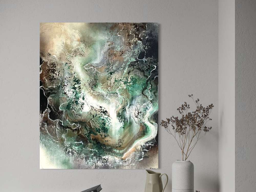 - Kuvaus: Akryylimaaleilla/sekatekniikalla toteutettu. Reunat maalattu kuvion mukaan. Teoksessa vähän struktuuria. Rauhallinen, maanläheisiä sävyjä omaava teos